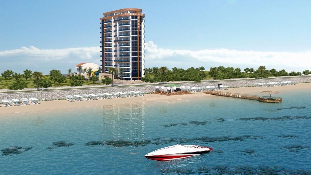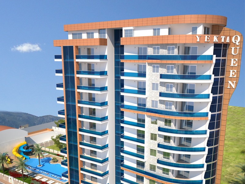 Yekta Queen Residence – уникальный жилой комплекс класс-люкс на 1 береговой линии с великолепными панорамными видами на Средиземное море. Его строительство началось в Декабре 2013 г. и сдан комплекс будет в Мае 2015 г. На этот комплекс можем сделать Вам беспроцентную рассрочку платежа до конца этапа строительства.Располагается жилой комплекс в развитом и экологически чистом районе Махмутлар г.Аланья. Сочетание горного прозрачного воздуха и бескрайней глади лазурного Средиземного моря при отсутсвии суеты большого города является просто бесценным достоинством этого места. Однако район современный и это значит, что вся городская инфраструктура – центральный променад, магазины, рестораны, парки, автобусные остановки и пр. – все это в шаговой доступности. Наша компания позаботилась об уюте не только аппартаментов, но и всей прилегающей территории. Вы сможете насладиться СПА-процедурами ( 3 вида саун) и расслабиться в открытом бассейне и в крытом бассейне с подогревом. Отдохуть и пообщаться с близкими и друзьями вы всегда сможете в беседках для отдыха, а Ваш глаз вокруг всегда будет радовать шикарный тропический сад , над высадкой которого будут работать лучшие ландшафтные дизайнеры нашего холдинга. Дети смогут порезвиться на водных горках или детской площадке. Для владельцев автомобилей будет создан подземный паркинг. Мы заботимся о Вашем спокойствии, поэтому по территории комплекса и в доме будет установлено видеонаблюдение. Для удобства на территории комплекса будет зона бесплатного Wı-Fı интернета и будет установлено спутниковое телевидение Три-колор. У комплекса будет своя береговая линия с пирсом! Все квартиры сдаются с высококачественной чистовой отделкой и частичной мебелью.