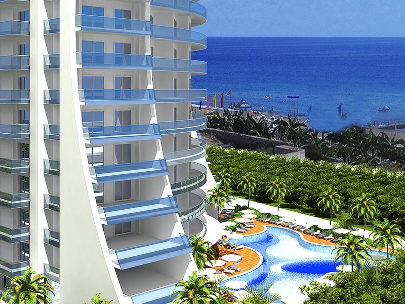Это современный комплекс который находиться в пригороде Алании Махмутлар. Это двенадцати этажный дом, где открывается красивый вид на горы и лазурное море.