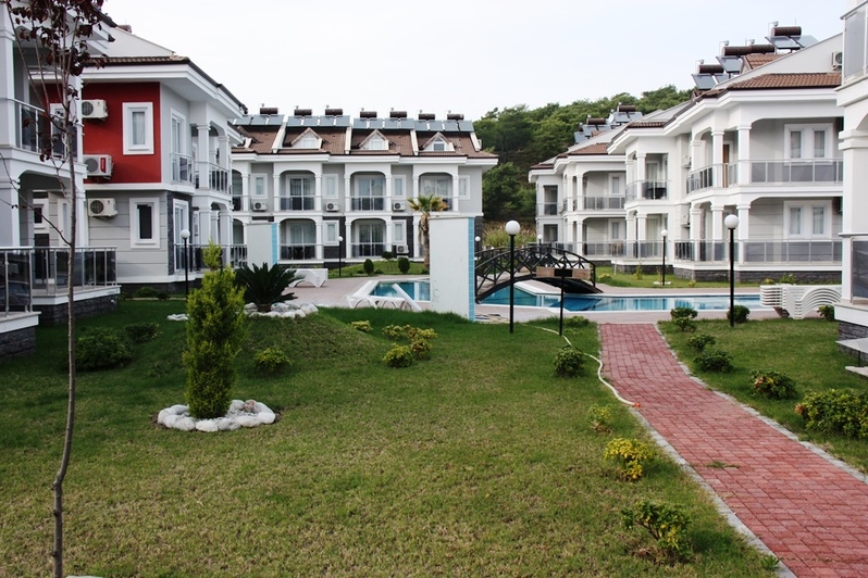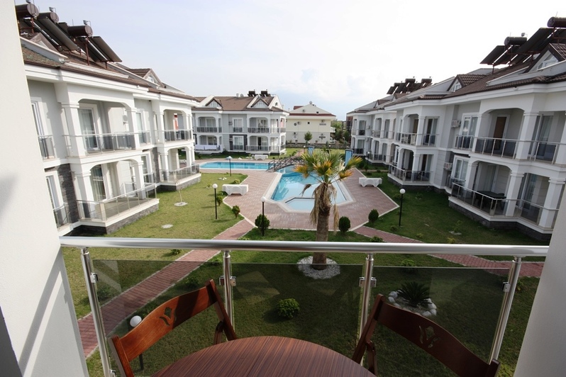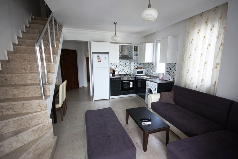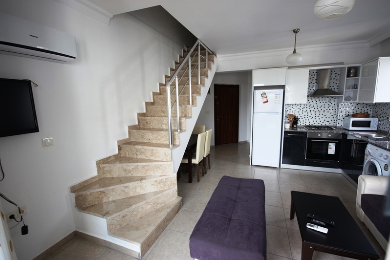 This lovely dublex apartment is superb located in stunning brand new complex. Calis beach Fethiye , recognized as a one of the famous beach of south west coast in Turkey. This light and airy duplex apartment with all modern conveniences, fully air conditioning, fully fitted kitchen tasty colorful furnished living and dining area, and a patio doors leading to a personnel terrace , that provides over looking large swimming pool and smaller child's paddling pool. The apartment can accommodate 5people.