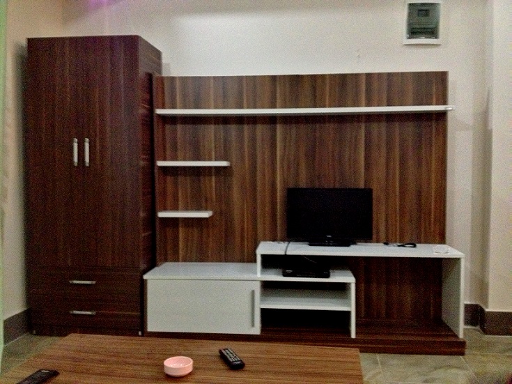 Квартира на первом этаже, кухня совмещенная с салоном, установлены кухонные шкафы. газовая печь, вытяжка, есть холодильник, вся необходимая посуда, полотенца. пастельное белье, стиральная машина, кондиционер, раскладной диван, телевизор, спутниковая система с русскими каналами, платинной шкаф, стенка- горка. В ванной комнате душ кабина. на окнах решетки, балкон с выходом в садик. Квартира рассчитана на 2 взрослых, может быть дополнительное место для ребенка.