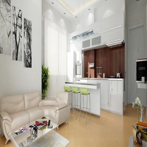 2-х комнатная квартира (1 + 1) состоит из отдельной спальни, большой гостиной, совмещенной с кухней открытого типа, одной ванной комнаты и балкона.