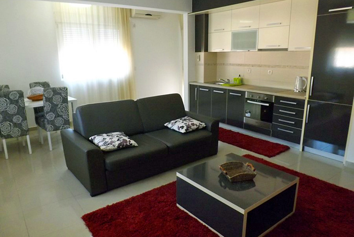 Сдается уютная трехкомнатная квартира класса люкс с видом на море в городе Будва, расположенная в центральной части города в жилом доме на четвертом этаже. В доме есть лифт. В квартире может разместиться максимум 5 человек. В квартире: две спальни, гостиная с обеденной группой, оборудованная кухня, ванная комната с душевой кабиной, две террасы, одна из которых с видом на море. В первой спальне - двуспальная кровать, во второй спальне – двухъярусная кровать и вспомогательная кровать, в гостиной - раскладывающийся диван. Также в квартире есть все необходимое для комфортного отдыха: стиральная машина, посудомоечная машина, телевизор (кабельное ТВ), Wi Fi интернет, холодильник, кондиционер (в каждой комнате), кухонные принадлежности, постельное белье, полотенца. Уборка квартиры, смена постельного белья и полотенец производится один раз в неделю и включена в стоимость. В непосредственной близости расположены рестораны и кафе, торговый центр, рынок, супермаркет, аптека, банкомат. Квартира находится в 150 метрах от моря, до ближайшего ресторана - 100 метров, до супермаркета - 100 метров.