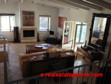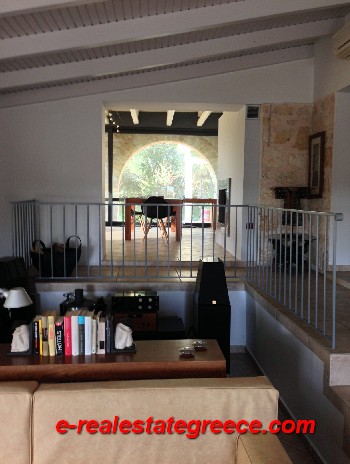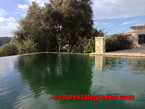 Stone house for sale. It is 278 sq.m. It consists of three bedrooms, living room, kitchen and two bathrooms. It is fully furnished in a minimal aesthetic. It offers unobstructed view to the sea, 2 parking spaces, 60 sq.m. pool, basement, air conditioning, central heating and garden. The house has mark of EOT and can be rent with high income. It is located within 4000 sq.m. of land, in Sivota of Thesprotia, Greece.