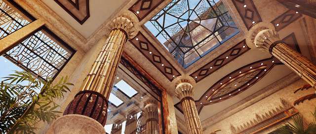 - красивый внутренний сад с фонтанами;