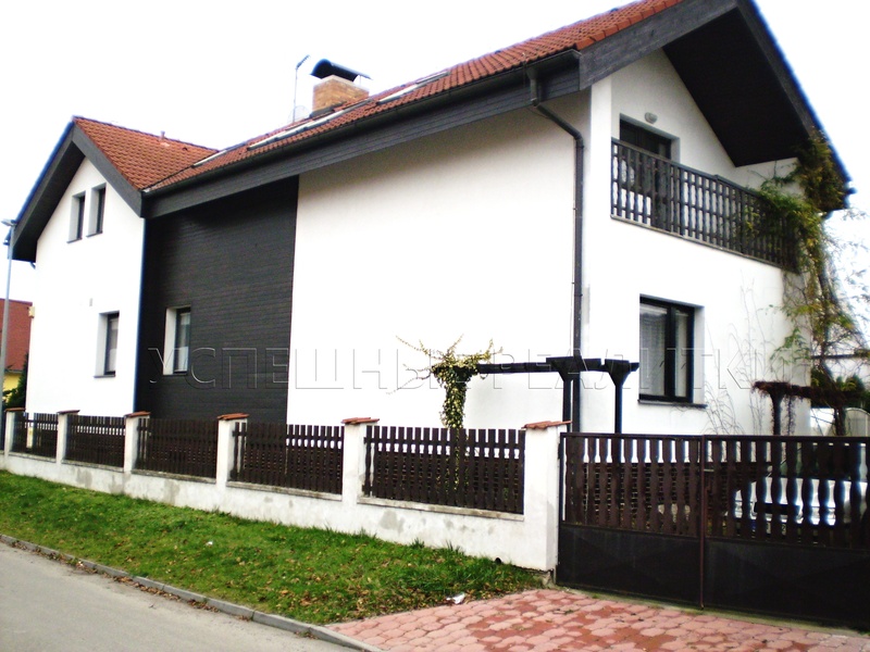 Продается дом с террасой и крытым бассейном ,а так же оснащен подвальным помещением и гаражом. Дом в диспозиции 6+2 находится в тихой части поселка Горни Почернице на роскошном месте, на улице Чехурова – Прага, участок составляет  503 кв.метра. В подвале находятся: гараж, котельная, хранилище, мастерская, тренажерный зал. На первом этаже: тамбур, коридор, гостиная с камином и выходом на террасу, кухня со столовой, две комнаты, ванная комната и туалет. На втором этаже располагаются: коридор, столовая с приготовленным местом на кухонный гарнитур, ванная комната, туалет и три отдельных комнаты, в самой большой из них имеется выход на балкон. Отопление : газовый котел,  электро- котел, бойлер (нагревание воды). Дом построен из кирпичных блоков фирмы «Porotherm», сделано утепление,  кровля « Bramac», деревянные евро окна (расположение: юг,восток,запад), проведена канализация, водопровод и газ, на участке имеется колодец (вода, к сожалению, не питьевая). На участке, расположенном на юг, посажены деревья, отделяющие и загораживающие вид  на соседей. Дом, благодаря своему размещению, прекрасно подходит как для проживания, так и для основания в нем офиса. Поблизости есть детский садик, начальная школа, ТЦ «Черный мост» , велосипедная трасса, недалеко станция метро «Черный мост»(линия Б). Рейтинг энергоэффективности - класс «G».