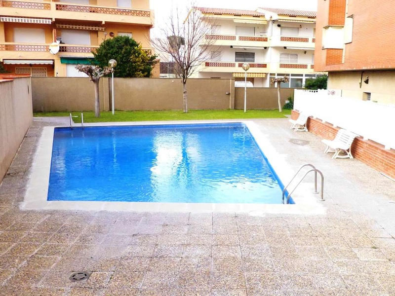 Apartment with sea views, on 1st floor with lift, located about 50m from the beach Riells, composed of lounge/living room with fireplace, kitchen, 2 bedrooms (one en suite) with fitted wardrobes, 2 bathrooms, terrace with fantastic sea views, a balcony, storage and underground parking. Swimming pool and garden. It has aluminum windows and electric heating. Furnished. Floor area: 85m2