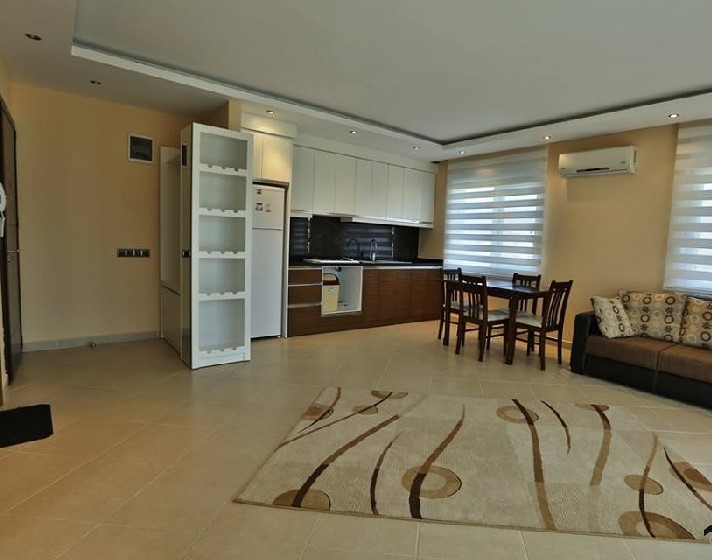 Apartments for sale in Alanya, Turkey. The residence consists of 2 blocks with 40-flats. The residence offers many benefits: Swimming pool with children's pool. The sun terrace with sun loungers and parasols, garden with lawn and many varieties of plants and trees. Playground. Power Generator. Indoor pool. Fitness. Sauna. Elevator. The apartment is located on the 2nd floor and is aimed to the north-east-south. Here you can enjoy the sun on the balcony. On a living area of ​​about 67 sq.m. The apartment consists of a living room with American kitchen, bedroom, bathroom and balcony. Apartments for sale furnished and ready to move. The interiors of the apartment: Ceramic flooring, PVC windows, blinds (partly electric), Steel entrance doors, interior doors, kitchen with appliances, shower cubicle, boiler, video intercom. For more information you can contact us via the contact form, chat, or you can call our office in Alanya to arrange a viewing of this apartment.