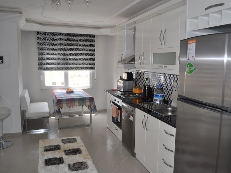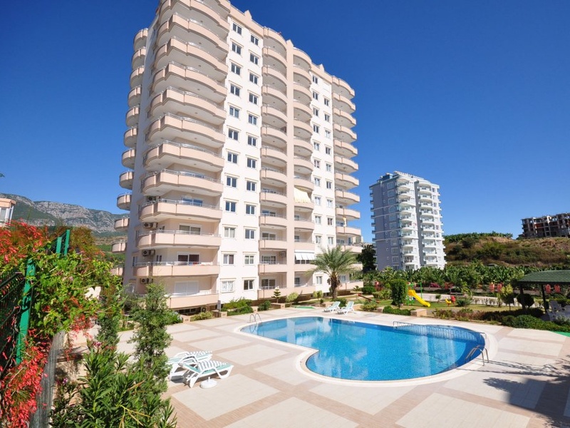 This apartment has a nice location only 500 metres from the beach. The apartment on 8th floor with mountain views is 120 m2 and has 2 bedrooms, 2 bathrooms, living room with open kitchen and 2 balconies. White goods and all furniture including to price. Complex Facilities; Gym Wifi Internet Cark Park Tennis court Minigolf area Poolbar For take more information you can write me or call. +90 543 309 3279 Viber and WhassApp.
