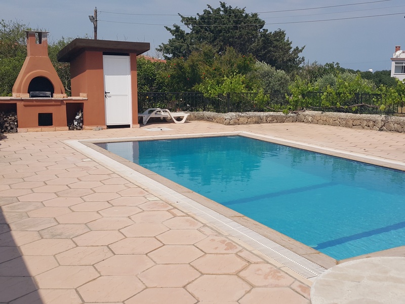 Very beautiful villa located in Karsiyaka 100 meters to the sea On a plot of 1 donum (1338m2) located villa 220 m2 3 bedrooms, 3 baths, spacious living room, kitchen Centralized heating system. Fireplace Pool B-B-Q Indoor garage Fruit trees in the garden (grapes, apple, fig, orange, lemon, cherry, apricot, peach ...)