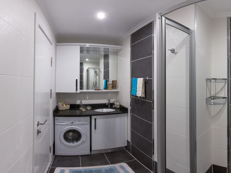 Built-in furniture in the bathrooms, wash basin, hanging toilet, shower special design