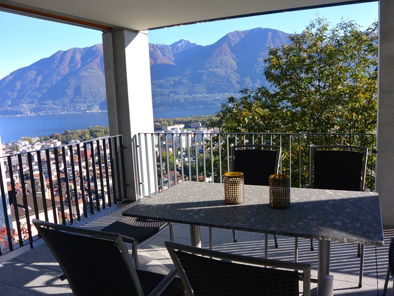 For sale panoramic apartment in Locarno, Switzerland. Locarno, located about 30 km north of Lugano, is a major tourist resort in Ticino, known for its film festival, in Switzerland. The apartment is located in the tower, near the historic city center, built in the thirteenth century in the family Visconti of Milan. In a short time you can reach the Lido Locarno. The apartment is spread on two levels, it has a beautiful view of the lake, which offers a beautiful setting with a modern touch. The apartment consists of: First level: • cold • 2 rooms • wardrobe • shower • Bathroom • Laundry • Room for hobbies. Second level: • Living-room • Kitchen • Dining room • Studio • Bathroom. The apartment has a large covered terrace, which extends on both levels and enjoys a private garden and green area. The house has a basement and two parking spaces on the lower level. Surface: 200 m2 Price: CHF 3'100'000