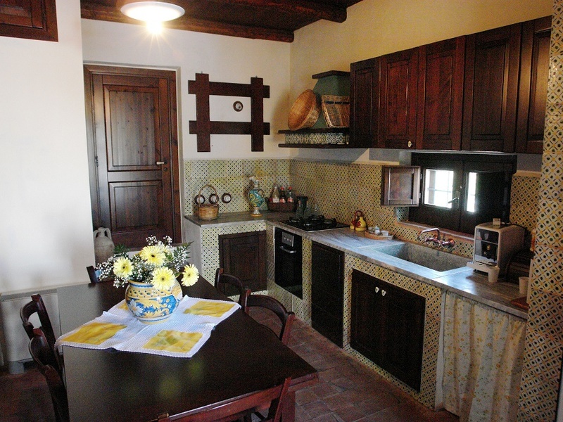 The structure in harmony with the surrounding nature , has four bedrooms. 2 doubles, 1 double with extra bed and 1 single with single bed and a half . All rooms have a private bathroom . On the ground floor there are kitchen , living room and two toilets . Outside the house a large terrace , stone oven barbecue and garden leading to the swimming pool ( size approx 8m x 12m ) independent and exclusive use of our guests . The property sleeps up to 8 people . Casale Nunziata is the ideal place for those who want to stay in contact with nature without sacrificing taste and confort.