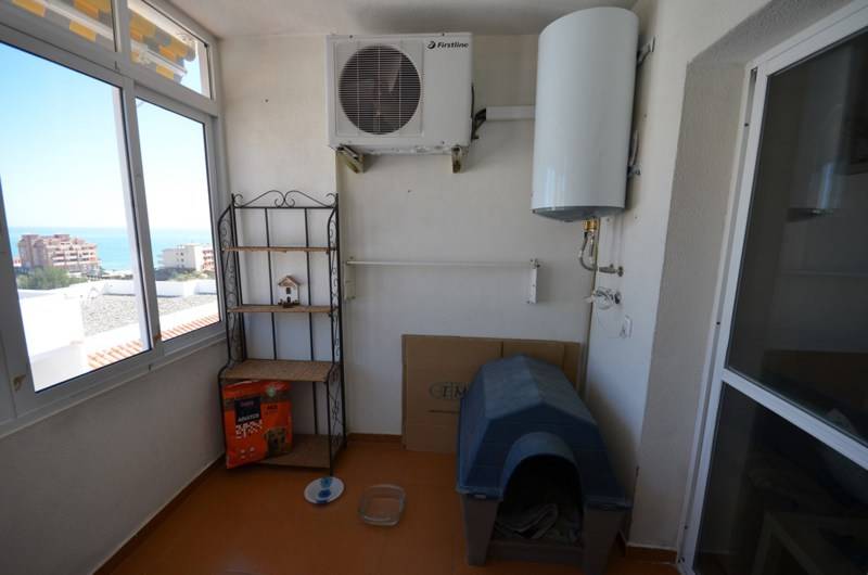 This nice and cozy apartment is situated near the beach of Carvajal. It´s located in a private community with large communal areas, gardens, 2 swimming pools (one for adults and one for children), 2 tennis courts. It´s only 300 m to the beach and within walking distance to the train station. Apartment has large living room, a terrace with sea and mountain views, 2 bedrooms with fitted wardrobes, marble bathroom with a tub and fully equipped kitchen. The price includes parking and storage. A/C, marble floors. Great vocational property close to the beach.