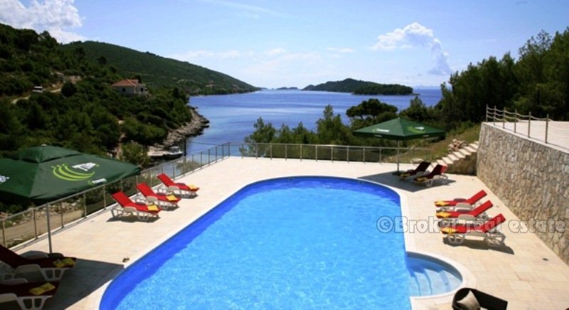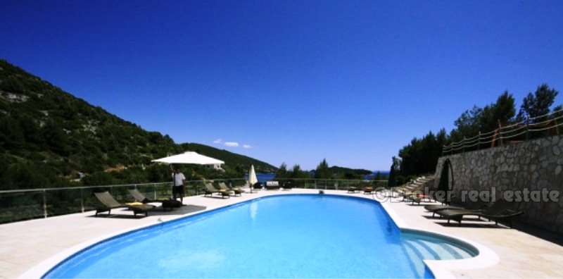 Villa for sale in Korcula island in the Adriatic Sea, in the southern part of Croatia, near the Dalmatian coast. Beautiful new villa in a small bay. Complete confidentiality. The villa is designed, built and located in attractive wooded area, which offers a magnificent sea view 180 degrees over the Adriatic. The living area of the villa 520 sqm, land area of 11,400 sq.m .. Inside, there are six bedrooms. Each bedroom has a bathroom with a jacuzzi. There are two large living rooms, one of which is located on the ground floor with large glass windows with magnificent views of the sea, installed underfloor heating. Garage for two cars, and the villa is fully furnished with designer furniture, has a 100sqm swimming pool.
