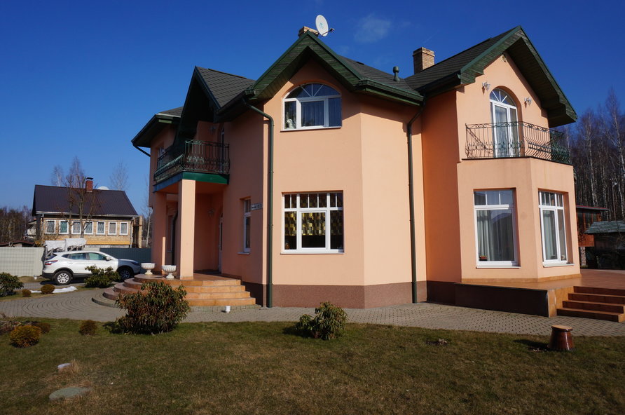 Дом с очень хорошой звуковой изоляцияй. На первом этаже уютная и просторная гостиная с норвежским камином, кухня с солнечной и светлой столовой, гостевая спальня и ванная комната, подсобное помещение и коридор. На втором этаже просторный и со вкусом украшенный зал с мягким уголком - журнальный столик со стульями, ковер ручной работы, солнечный и теплый 4 спальни, просторная и красивая ванная комната, кладовая.