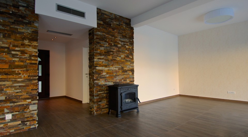 Вилла состоит из двух этажей, имеет два отдельных входа в независимые половины дома,  поэтому может стать домом для двух семей. Каждая независимая часть дома состоит из 3 спален, 2 ванных комнат, гостиной с камином, кухни и зоны столовой, а также технической комнаты.