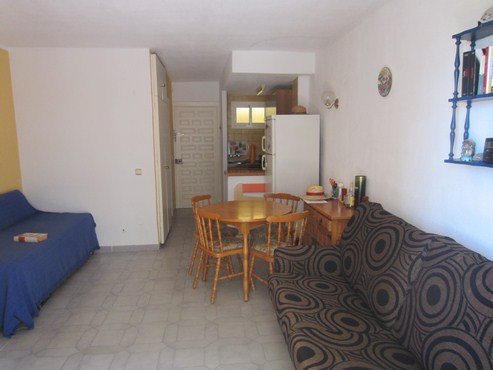 Distribution: Living room with 2 fitted-in wardrobes and sofa bed. American fully equipped kitchen. Bathroom with tub. Grey ceramic flooring. Water included in the community fees.
