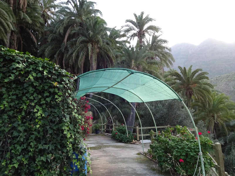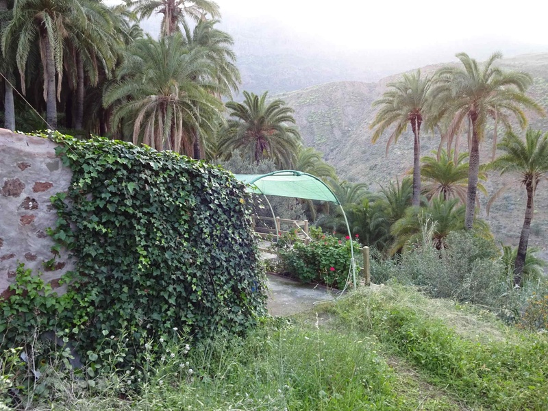 Das Grundstück ist sehr schön mit Orangen-, Zitronen-, Avocado-, Mandarinenbäumen angelegt. Unverbauter Blick auf den Palmenhain.