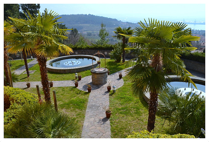 Beautiful and comfortable villa with fantastic sea view is located in a seaside town called Ankaran (near Koper and Italian border), in a peaceful and private location. 3 floors. 582 m2. There are many bedrooms, bathrooms, kitchens and dining rooms, two saunas, elevator, two large living rooms, utilities, a few terraces, swimming pool, billiard room, garage and parking places in yard. Nice back and front yard with two fountains, Mediterranean plants and trees.