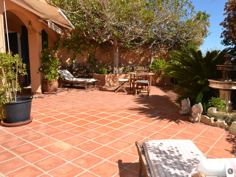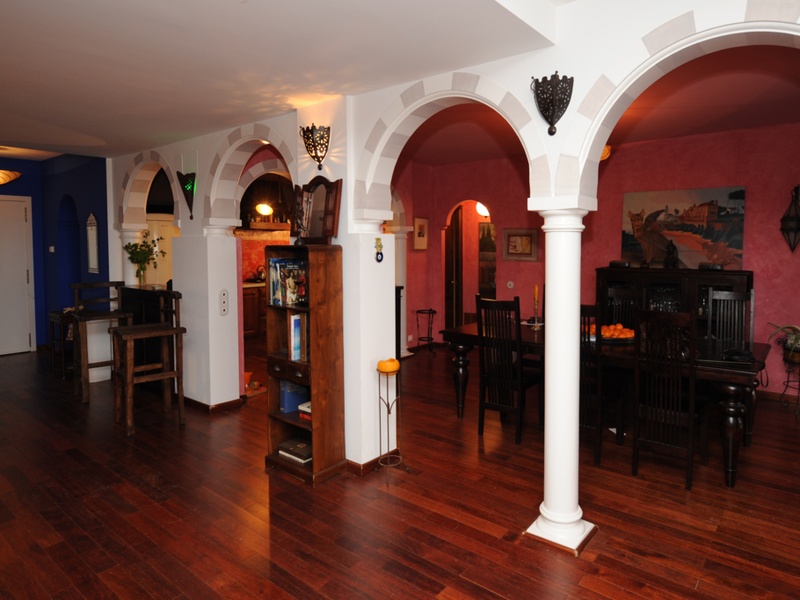 From the terrace of 40 meters sky seen with a beautiful Arabic font , you can enjoy quiet evenings reading and good company with the best views of the Mediterranean in the shade of giant ficus who chairs the garden. Being ground floor, gives it a look of detached house . The protagonist of the apartment is its bright and huge hall of 110 meters, attached to the dining room for 3 arches on marble columns . The large kitchen , fully furnished , practical and invites you to share in its two open bars those moments of cooking between lectures and stoves that you love , Your countertop and sink aged marble and Italian and made tiles hand confer a bohemian air and endearing time.