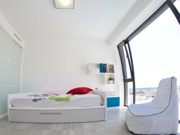 Sale Modern and luxury villa with sea views in Costa Blanca (south), a strip of the Mediterranean coast of Spain, Alicante province, autonomous community of Valencia. Zone of tourism and recreation. The villa was built in 2015, it has 5 bedrooms, 3 bathrooms. The living area of the villa is 295 square meters, the total area of 305 square meters plot of 700 square meters, parking. The villa has a private terrace, mountain views, air conditioning, swimming pool, cellar, garden, sea views, kitchen. The villa is famous for its luxury contemporary design, which is dominated by large windows that allow sunlight to penetrate. Paco Fuster, an architect, designed the house with great attention to detail. Architecture and interior design offers an excellent example of how you can combine the elegant facade with a cozy interior. It consists of a large living room with a fully equipped stainless appliances, 3 bedrooms and 3 bathrooms, kitchen. The house is divided into 2 floors, plus an English garden and a garage. Good distribution of the windows to establish a strong connection with nature and at the same time allows its residents to enjoy a beautiful view of the sea.