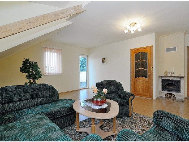On the ground floor of the house – the kitchen, living room with fireplace, lounge, tambour and a room. On the second floor – lounge, bedroom and bathroom.