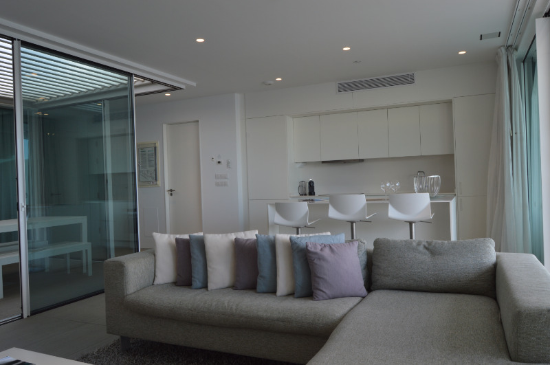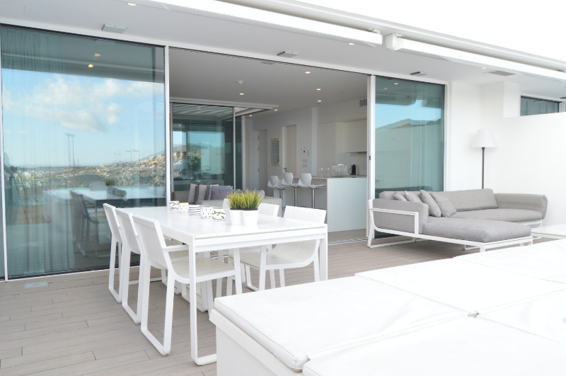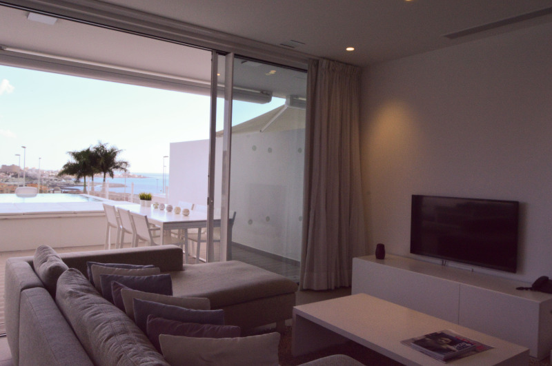 For sale is a two-room apartment in Adeje, a municipality in Spain, is part of the province of Santa Cruz de Tenerife as part of the autonomous community of the Canary Islands. Is on the island of Tenerife. One-bedroom apartment with private pool. Incredible apartment for sale in Baobab Suites, with a modern design in the heart of El Duque. These apartments with panoramic sea views and very practical layout are located on one floor and very bright. With an open-plan kitchen, a spacious living room, a patio, 2 bedrooms, each with its own bathroom. Both bedrooms have built-in wardrobes. Air conditioning in all rooms. Thanks to the patio, there is plenty of light, you can open and close the patio windows and the electric roof to create a more cozy or open living space. The outside terrace is very large, with a private pool and even a beach. The total area of the apartment is 96 square meters. The terrace has 28 square meters. M ..
