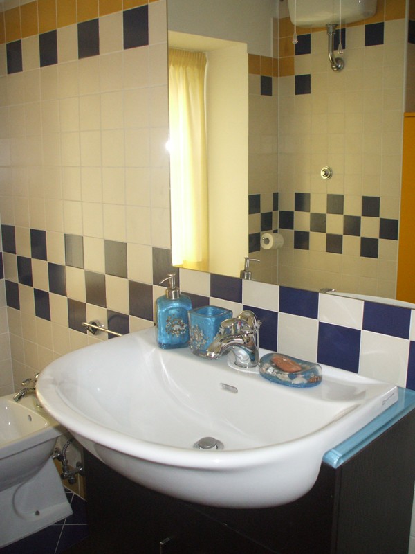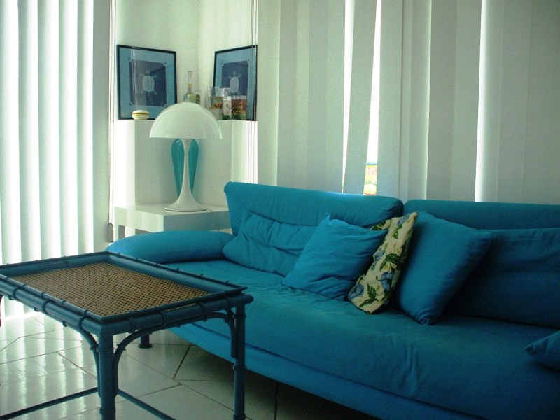 Интерьер виллы выполнен в средиземноморском стиле, с преобладанием синих и жёлтых оттенков. На 1-м этаже находится спальня с 2сп.кроватью, ванная комната с душевой кабиной и просторная гостиная - кухня.