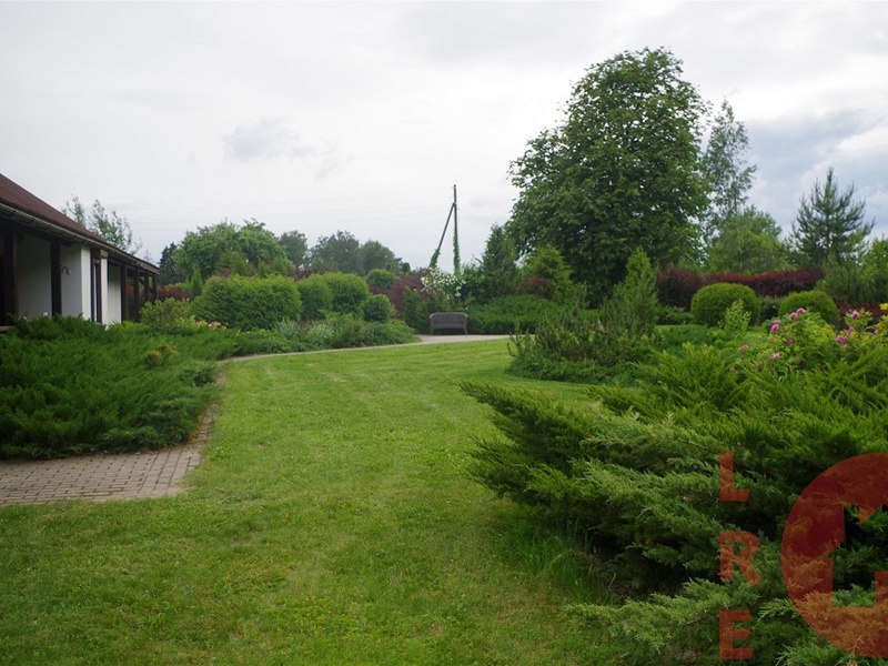 For sale house with an area of 180 m², there is, a large and elegant decorative garden with paved paths. Basic seedlings in the garden of coniferous plantings and roses. The house is suitable for independent living and farming as well as for leisure. 3.08 hectares of land has its own forest and pond, a fruit tree garden, a shed for firewood, a sports ground. Home heating is provided with two fireplaces and an air stretching system throughout the house as well as electric radiators. Water - spice 40 meters, 3 phase electricity, local sewerage. Internet, alarm, as well as fire alarms, windows have built-in metal blinds, roof Velux windows, sun blinds. The house is sold with all furniture and interior items, as well as garden equipment and garden interior items. The property is a 10-minute drive from Tervete Nature Park, Lake Swan and a quarry with built-in swimming and recreation areas (boat, water bike, catamaran rental, fishing). To Riga for 1 hour by car. Ideal place to relax - nearest neighbors 1 kilometer away, while shops, restaurants, cafes are 10 minutes away by car.
