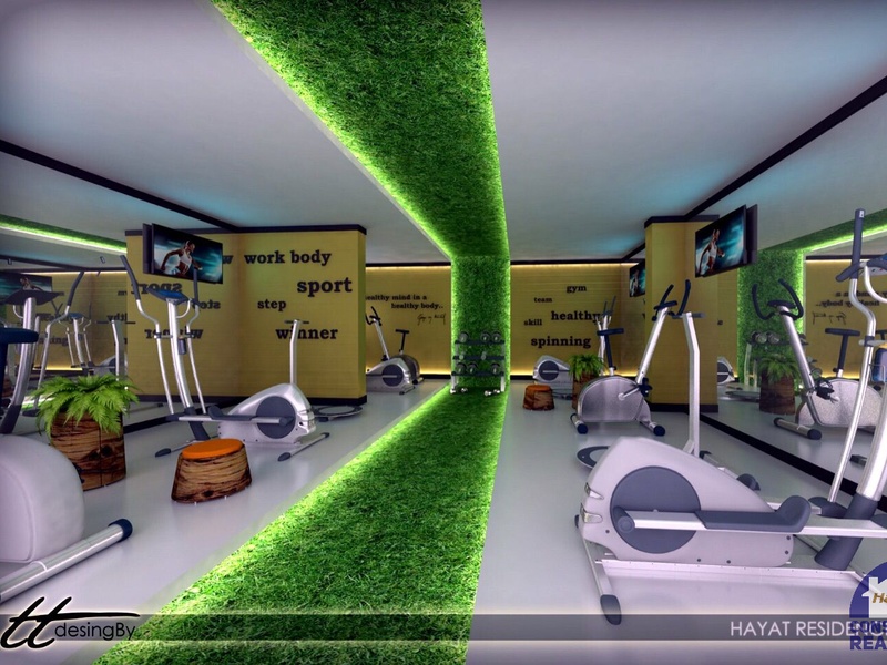 - тренажёрный зал, раздевалки, душевые кабинки, WC