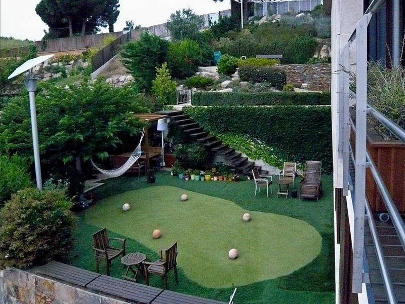 Средиземноморский сад с бассейном 10х5 и две площадки мини гольфа.