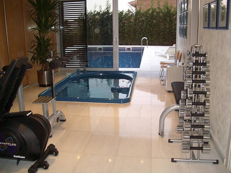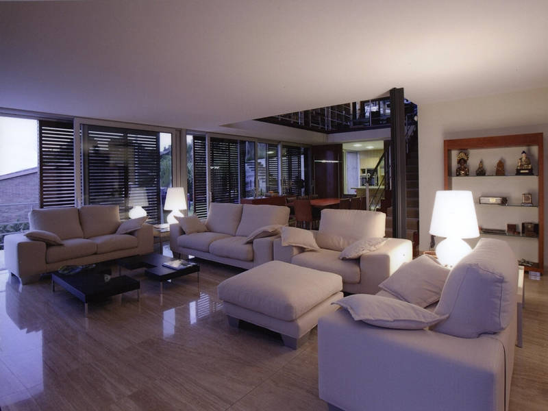 Просторная гостиная со столовой и камином, основная супружеская спальня с гардеробом, ванной комнатой и выходом на террасу, ещё три супружеские спальни со своими ванными комнатами, оборудованная и полностью экипированная кухня-офис с островом, кабинет с библиотекой, тренажёрный зал со СПА, джакузи, сауной, мини бассейном и вспомогательной кухней, бильярдная, винный погреб, кладовка, гладильная.