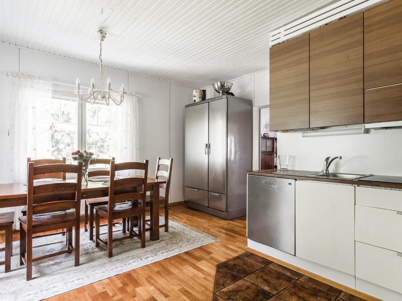 Годовой налог на недвижимость составляет - 300€ + 30€ /месяц за воду, электрическое отопление летом около 200€ /месяц, зимой около 400€ /месяц + отопление дровяное/камин, стоят два кондиционера. В доме 4 комнаты, три спальни, кухня (большой холодильник/морозильник, посудомоечная машина, вытяжка, плита, пол ламинат), душевая кабина, полы с подогревом, два туалета, одна сауна в доме, вторая на берегу 25m², подключение стиральной машины. Нынешний владелец сделал ремонты: в 2009г - дренажа и водяных насосов, 2010г - строительство домика для барбекю, установка спа-ванны, в 2011г установлен водонагреватель, теплый гараж, навес и складское здание, реконструкция причала, 2012г - дизайн сада и обновление, 2013г - строительство застекленной террасы, в 2014 году навес окрашен во второй раз, все электрические радиаторы были заменены, в 2016г - заменены все 46 светодиодных ламп освещения сада.