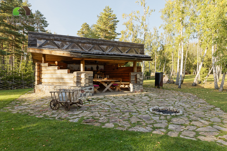 In addition to the main building, there is a large barbecue house with a wooden stove and a pizza oven (60 m2), 2 outdoor toilets and a two-storey guest house. The guesthouse (35 m2) has 3 rooms, it accommodates at least 10 people. In addition, the construction of smoke sauna is currently in process.