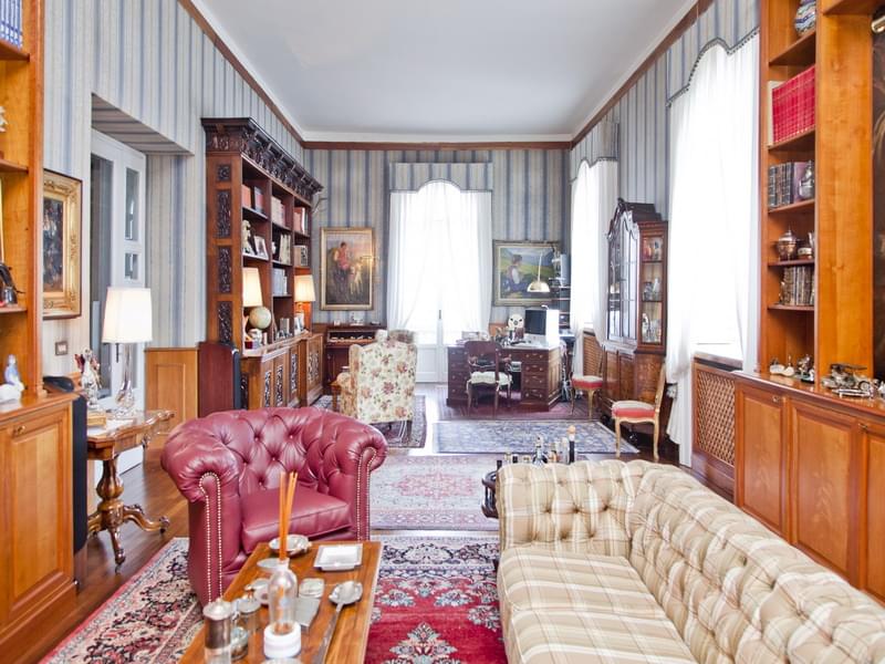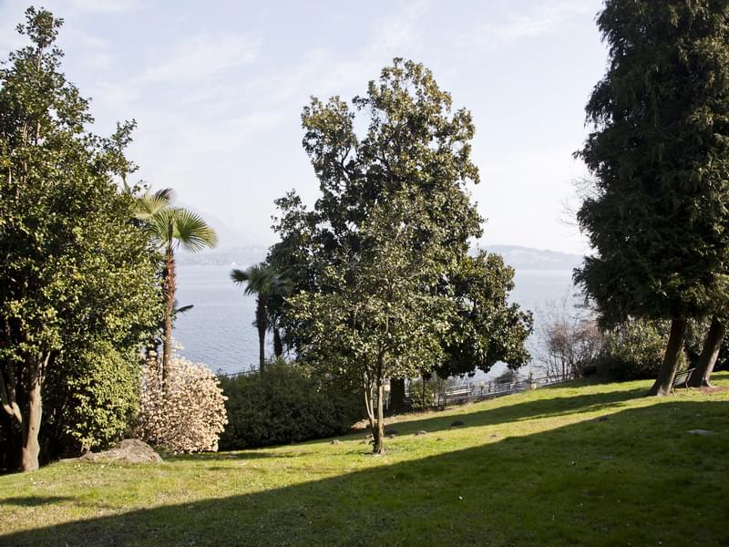 Historical lake front villa for sale in Stresa with a beautiful view over the Borromeo Islands. The main villa that has a surface of 800 sqm and it’s disposed on 4 levels, is surrounded by a park of 5.000 sqm, with the dependence of 102 sqm, storage room with mezzanine, garages, dock and private beach.The villa consists of an exclusive large entrance hall on the raised ground floor, embellished by the majestic helicoidal marble staircase which leads to the upper floor. From the entrance, to the left, there is a big living area with fireplace and the study room; on the right the dining room, eat-in kitchen and a guest bathroom. On the first floor the night area, composed by a master bedroom with en-suite bathroom and walk-in closet, other two double bedrooms, bathroom with tub and a study room. From the stairs in the study you get to the last level, which is an attic floor. The attic is composed by a relax area/study, four bedrooms and a bathroom. In the basement there are the tavern, gym, laundry and wine cellar. In the beautiful park with century trees surrounding the villa, we find the dependence consisting of a living room, kitchen, two bedrooms and bathrooms. Next to it another little house with living room, kitchen, one bedroom and one bathroom. Moreover, above one of the two double garages, there is another hobby room with big windows facing the lake. This magnificent property is completed by a dock (its license has been recently renewed) with a shower, and a private beach.