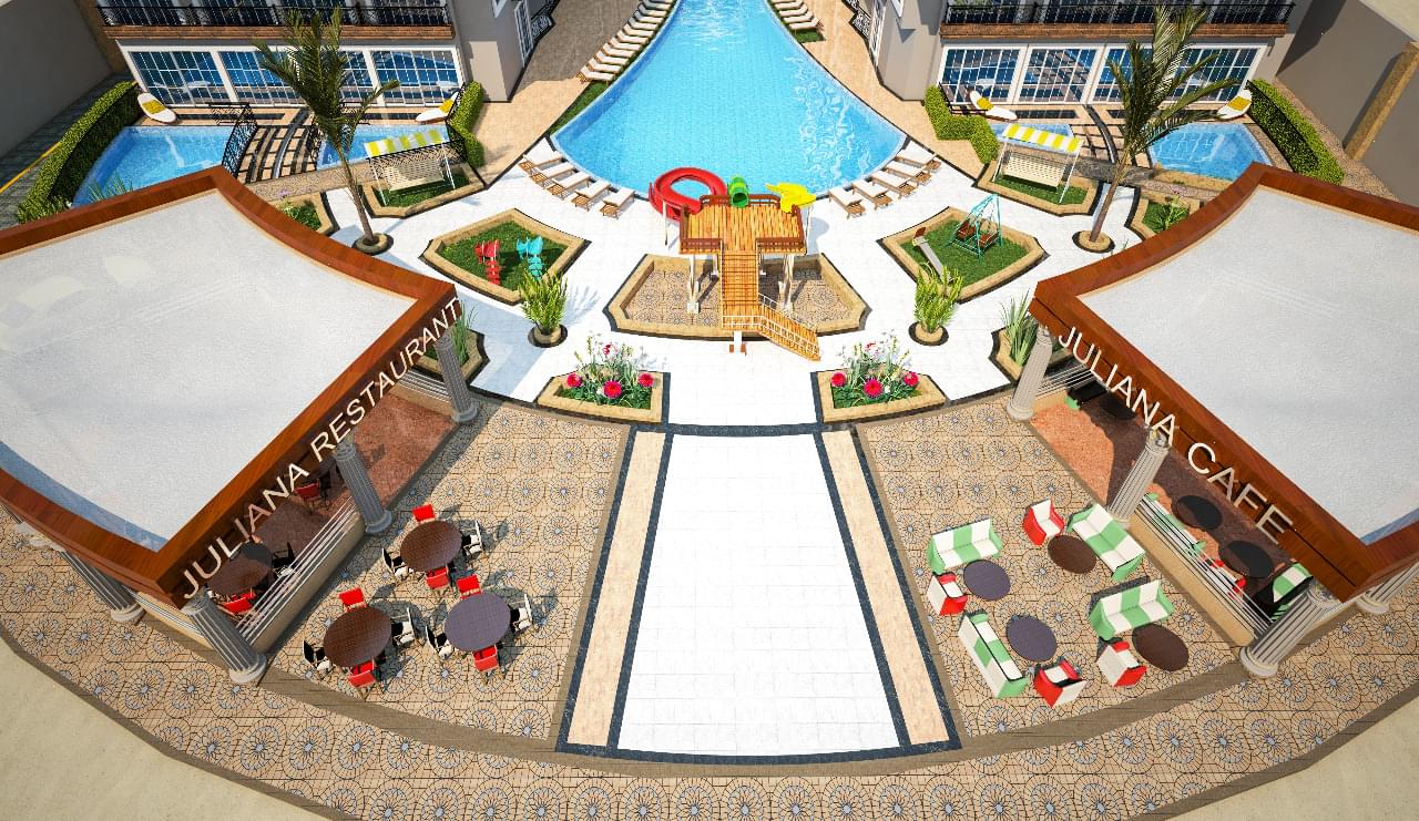 Apartments with very good location right on the shores of the Red Sea Resort is great with approximately 400 apartments in total, ranging from the studio to the spacious 4 bedroom duplex, Juliana the seaside resort is sure to have the right size property for you. Located right on the beach and just 10 minutes from the center of Hurghada, Juliana Resort occupies a prime real estate location. With studios here starting from as little as 17036,25€ and an interest free payment plan allowing you to extend payments until June 2021, the seaside resort of Juliana is not only one of the best developments to launch in Hurghada, but also one of the most affordable. Located directly on Juliana Beach in AL Ahyaa on the beach Juliana Resort occupies a prime real estate location. Residential beachfront resorts being quite limited in demand from Hurghada are still high for these properties. Your apartment will be easier to resell in the future or rent and maximize your returns. If you are looking for a vacation home where you and your loved one can have fun relaxing long weeks in the sun or a property investor looking for a property that has huge potential for capital valuation and rental returns, the resort Juliana ticks all the boxes. Private beach security equipment 24/7 lifts and highlights at all floors on pools Access from site directly main road from the bottom entrance prices large payment plans until 2021 completion in June 2020 due free There are 17 different sizes of studios with different views, 8 different sizes of 1 bed apartments, 6 different sizes of 2 bed apartments and 4 different sizes of duplex please contact us for a list of the price.