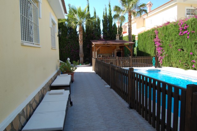 Шикарная вилла в престижной урбанизации Сьюдад Кесада. Дом с жилой площадью в 160 кв.метров, расположен на участке в 600кв. метров, с 3 спальнями, 3 ванными комнатами, двумя просторными терассами,одна из которых в виде тренажерного зала. Летняя кухня, частный бассейн, въезд для машины.Дом полностью меблирован и оснащен электробытовой техникой. При желании можно проиобрести без мебели