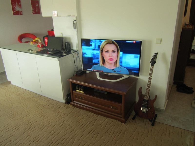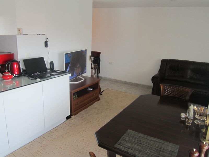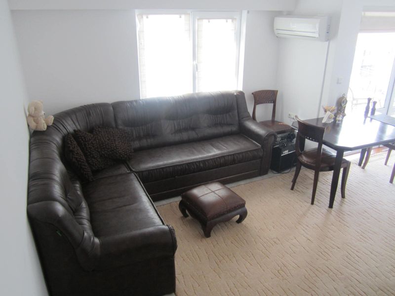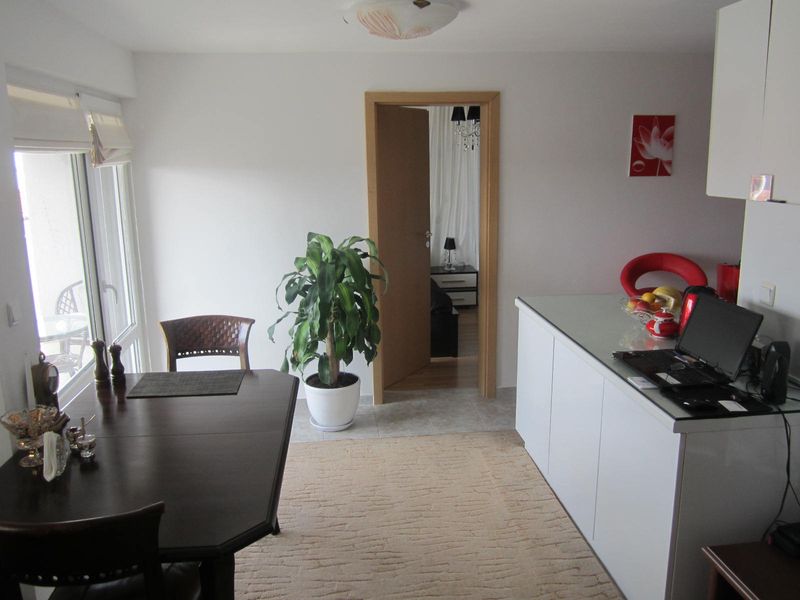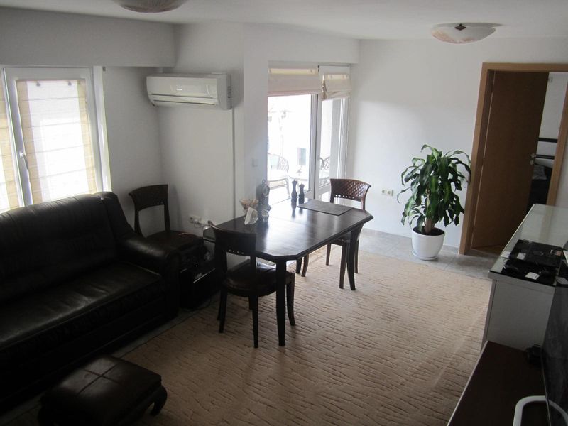 The apartment has kitchen located into the living room, a bedroom and a bathroom, two balconies. The apartment is furnished, air-conditioned, with washing machine and dishwasher.