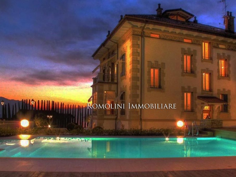 A truly magnificent Neoclassical manor house with dominant views of Lake Maggiore for sale. A few steps from the lake, the property is surrounded by a fenced garden with pool.