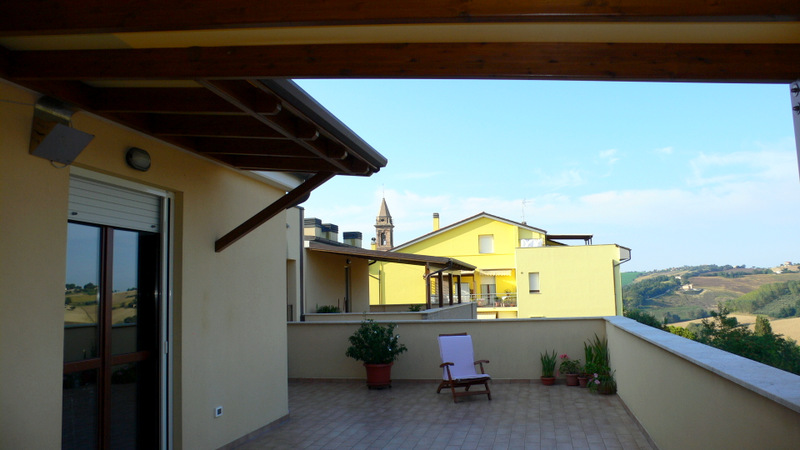 Квартира в 17-квартирном доме на последнем 3 этаже, 90 кв.м, терраса 50 кв.м и большой балкон. Гостиная, кухня, 2 спальни, 2 санузла. Дом расположен в центре небольшого городка в 12 км от моря и курортного города Сенигаллия. С террасы открывается шик...