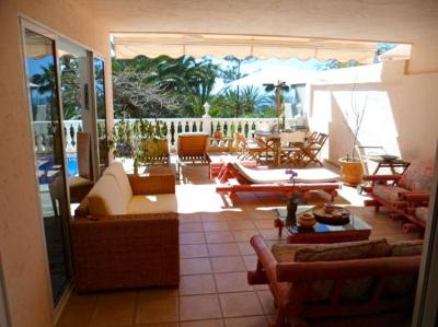 Villa with three bedrooms and beautiful view on the golf course in a quiet residence Punta Blanca. The villa has one level, three bedrooms with showers and dressing rooms, maid's room, guest bathroom, laundry area, dining area, kitchen, covered terra...