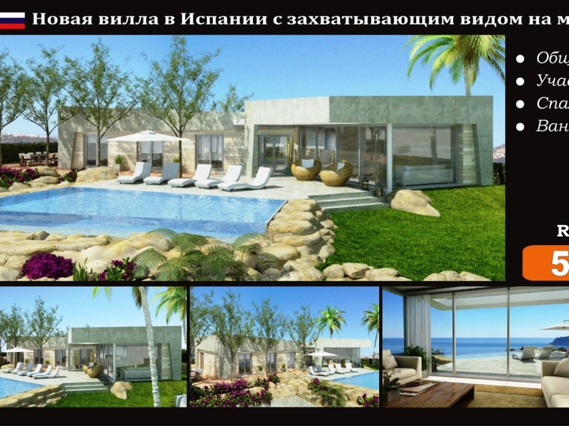 New villa in Spain with spectacular sea views in Moraira (Costa Blanca). Total area: 175 m2 Plot: 915 m2 Bedrooms: 3 Bathrooms: 2 + 1 Sea View: Yes Distance to sea: 1.5 km Lot: MOR151215 PRICE: 579 000 € Fantastic new villa project on a ...