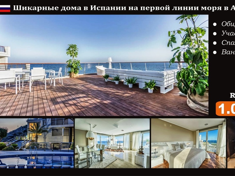 Amazing house in Spain with direct access to the sea in the exclusive area of Alicante (Costa Blanca). Total area: 370 m2 Plot: no Bedrooms: 3 Bathrooms: 3 Sea View: Yes Distance from the sea: 0 m Lot: ALC151201 PRICE: 1 000 000 € The ...