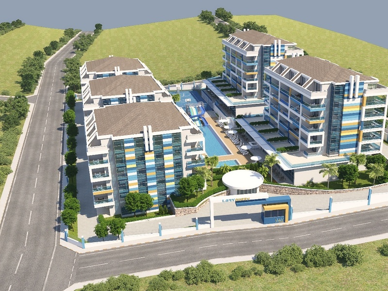 2-х комнатные апартаменты с видом на море в новом элитном жилом комплексе Lory Queen - расположенном в тихом и уютном районе Алании - Кестель, в окружении удивительных пейзажей долины Dim  и Средиземного моря. Всего в 5 км от центра Алании и 200 м от прекрасного чистого пляжа.