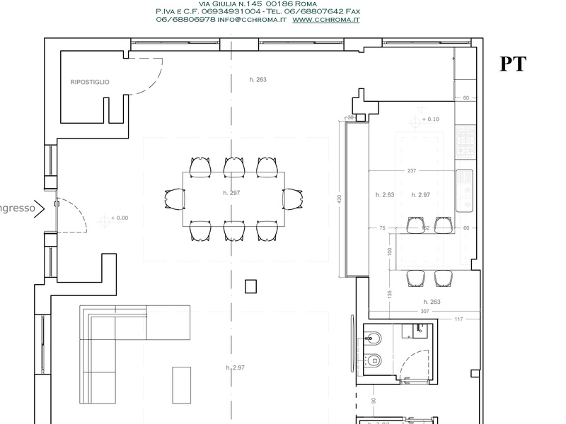 Вилла расположенна на четырех уровнях, размещена на 290 квадратных метрах и имеет два входа: основной вход и вход для обслуживания.