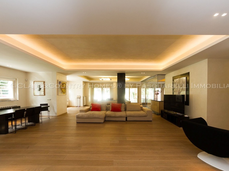 В одной из самых зеленых зон Рима, в нескольких минутах езды от центра города, предлагаем на продажу престижную виллу c рафинированным ремонтом, частным садом и бассейном.