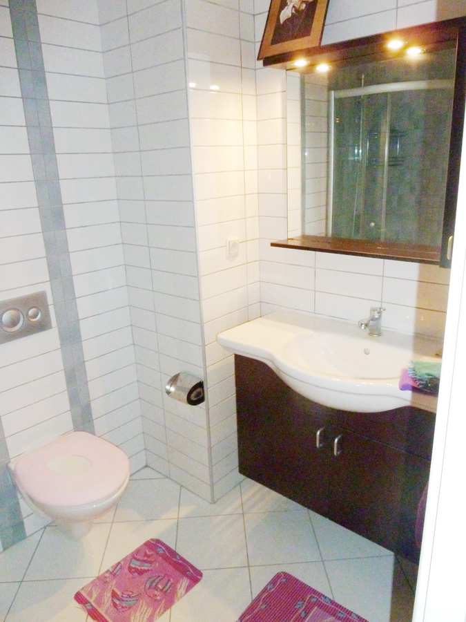 Квартира в идеальном состоянии, практически не использовалась, вся новая мебель. В квартире две спальни, две ванные, гостиная совмещенная с кухней, большой балкон-терраса с панорамным видом на горы.