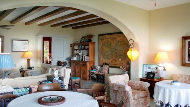 Villa for sale in Puerto Rey, Almeria Spain. One of the most unique villas on the Spanish coast in the area 4,200m2 on the beach with private access to the beach. The villa has 600 m2 with 5 bedrooms, each with en suite bathroom plus a guest house of 300m2. The entrance hall leads to a bright and spacious living room with a magnificent view of the garden and the sea. Kitchen (40 m2) fully equipped with a huge fireplace, separate laundry room and a second small kitchen for cooking. On the ground floor there is a great porch with access from the living room and kitchen to eat and enjoying the breathtaking view of the sea. The upper floor has a second living room with sea view. Large master bedroom with dressing room and bathroom with a large shower and a bath with a full sea view. Marble. The villa has a pool table, hot tub and tennis court. From the garden you have direct access to the beach Vera. The villa also has a guest house of 300 m2 with a large porch, living room, kitchen, two bedrooms and a bathroom. On the second floor there is a separate access via an external staircase and has a third bedroom with a bathroom and a terrace overlooking the sea. The villa is surrounded by tropical gardens with 100 palm trees, bougainvillea. The unique location! 3 double garage with electric gates.