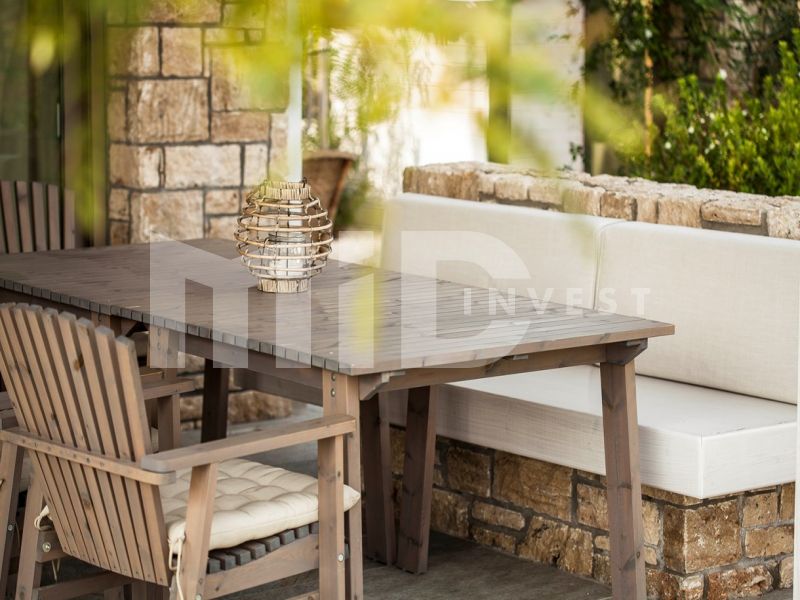 Maisonette with original design and stunning sea view is located in a complex consisting of 5 villas in front of the sea. On the ground floor there is a living room combined a kitchen, a dining area and a restroom. The first floor has a master bedroom with a king size bed, two bedrooms with two single beds in each and a bathroom. The house is equipped with all necessary furniture, appliances, internet, playgrounds, a shared garden area of 4000 m and a veranda of 25 m. The Maisonette is located at a distance of 300 m from the restaurant where guests can dine and drink a cup of coffee and 1.5 km from supermarkets, shops, restaurants and cafes. The mesonette can accommodate up to 6 people. This price above is the rent price for a week in the lowest season. For more information, please contact us by phone or send us an email. http://www.midinvest.gr/en/chalkidiki-sithonia-maizonette-2490/