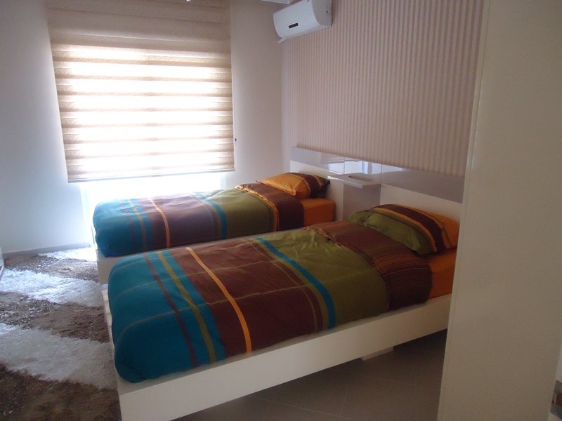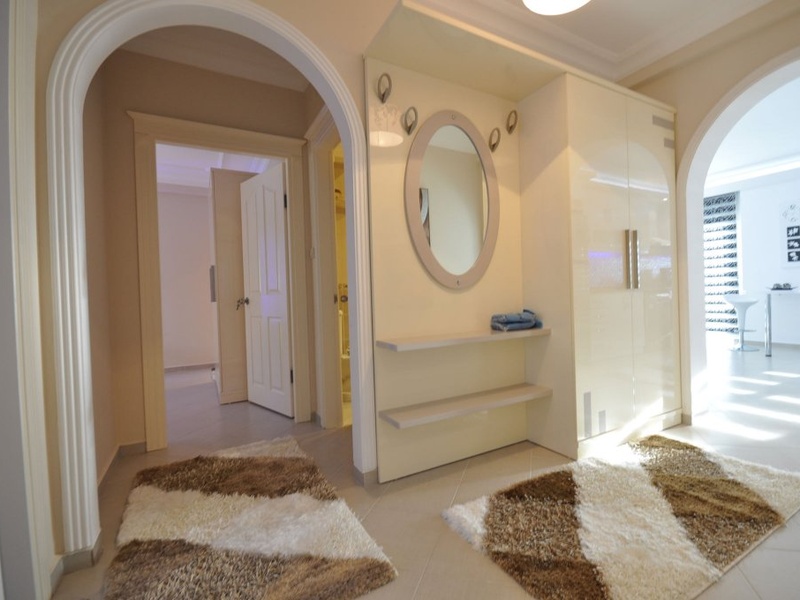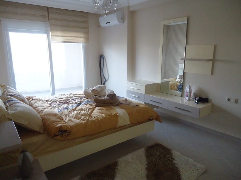 This apartment has a nice location only 500 metres from the beach. The apartment on 8th floor with mountain views is 120 m2 and has 2 bedrooms, 2 bathrooms, living room with open kitchen and 2 balconies. White goods and all furniture including to price. Complex Facilities; Gym Wifi Internet Cark Park Tennis court Minigolf area Poolbar For take more information you can write me or call. +90 543 309 3279 Viber and WhassApp.